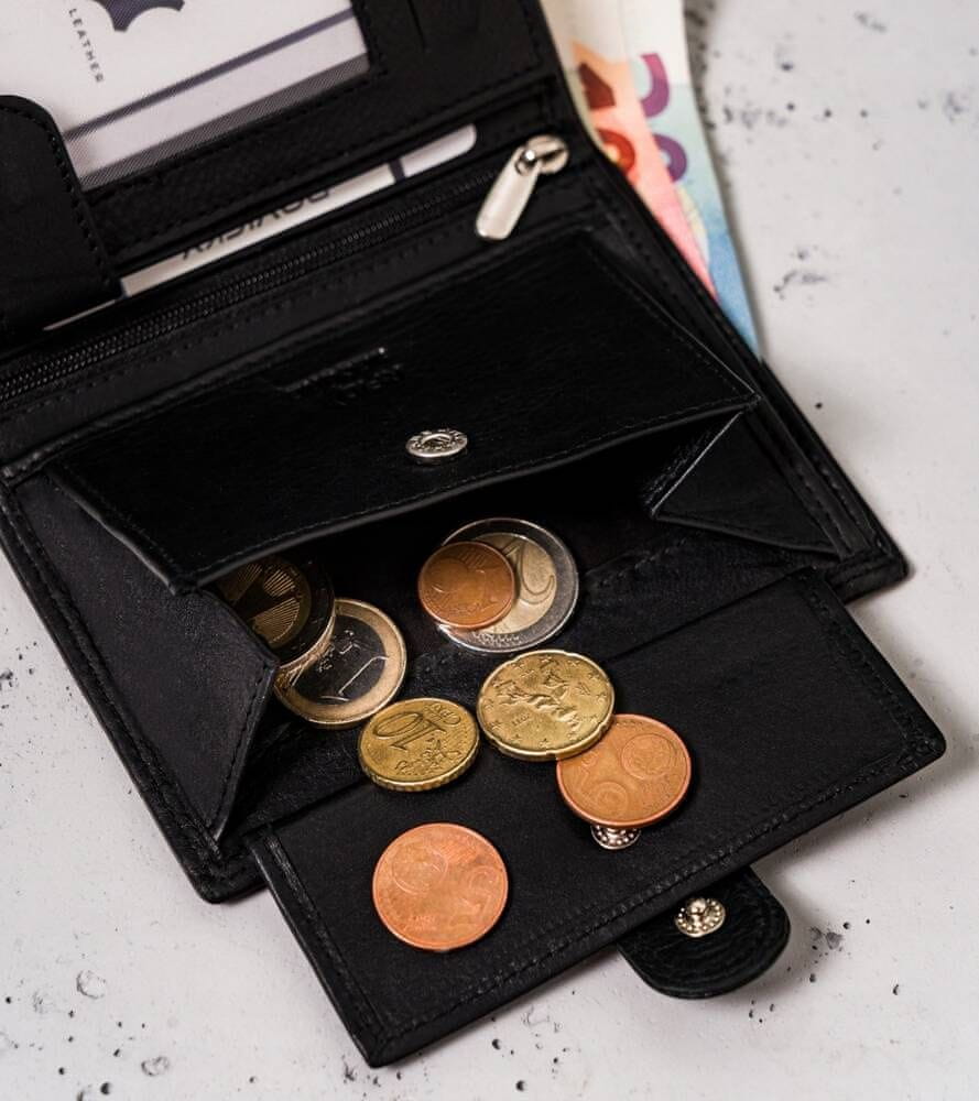 V žepe za bankovce in kovance lahko spravite zadostno količino gotovine.