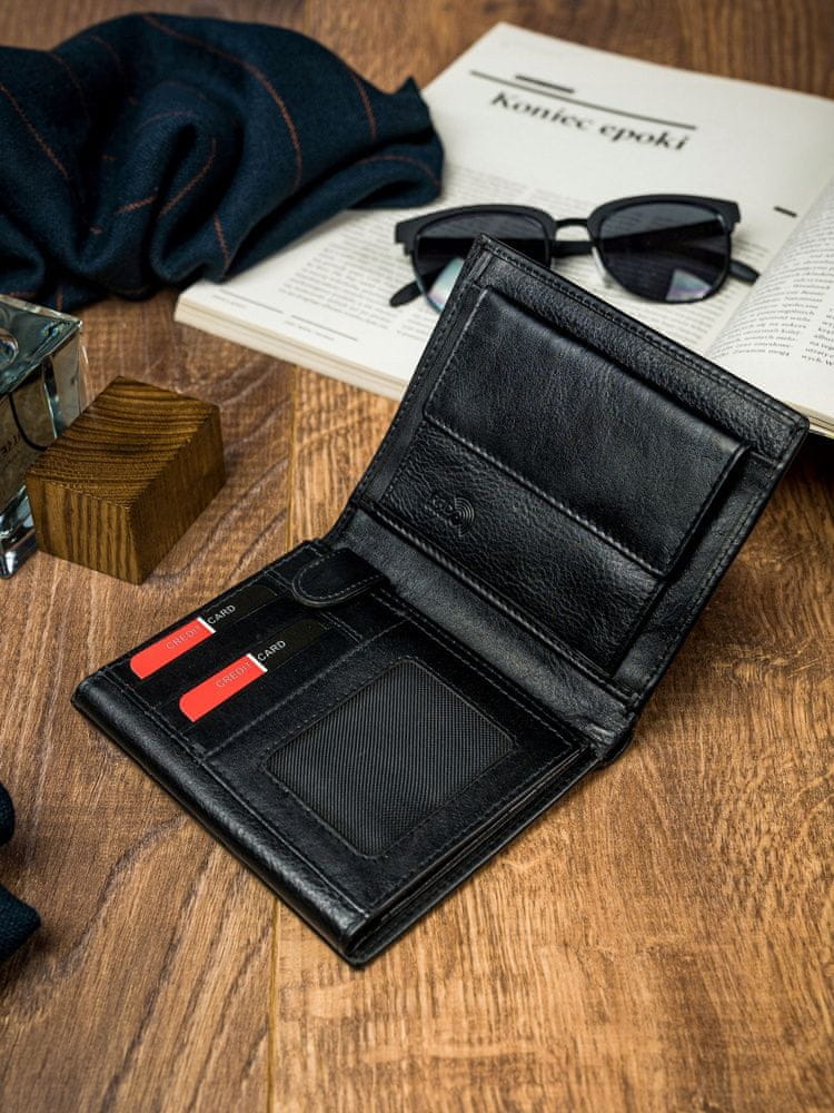 ki ščiti denarnico pred tatovi z uporabo čitalnika kartic;     Denarnica je velika, a priročna.