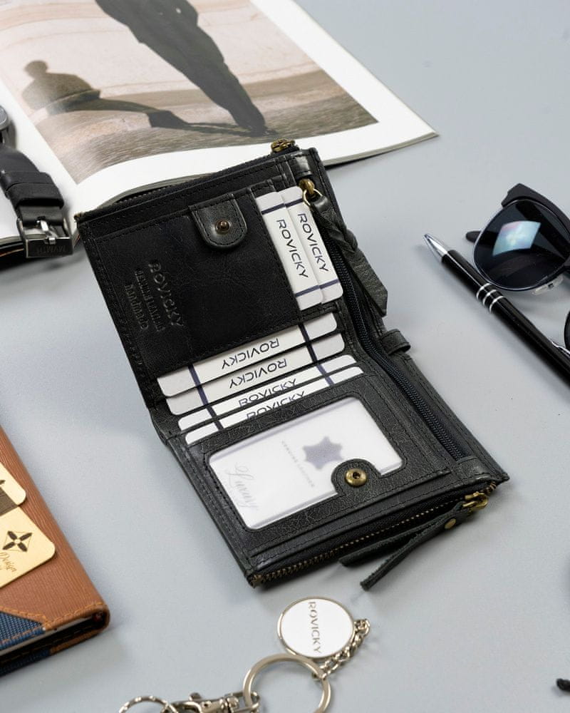 Denarnica je velika, a zelo priročna. Prostor v notranjosti je bil maksimalno izkoriščen za zagotavljanje maksimalne funkcionalnosti.