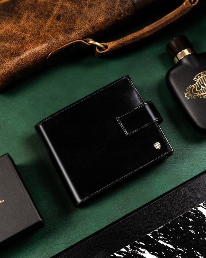 Velika usnjena moška denarnica z zapiranjem na gumb – Rovicky Celoten opis
