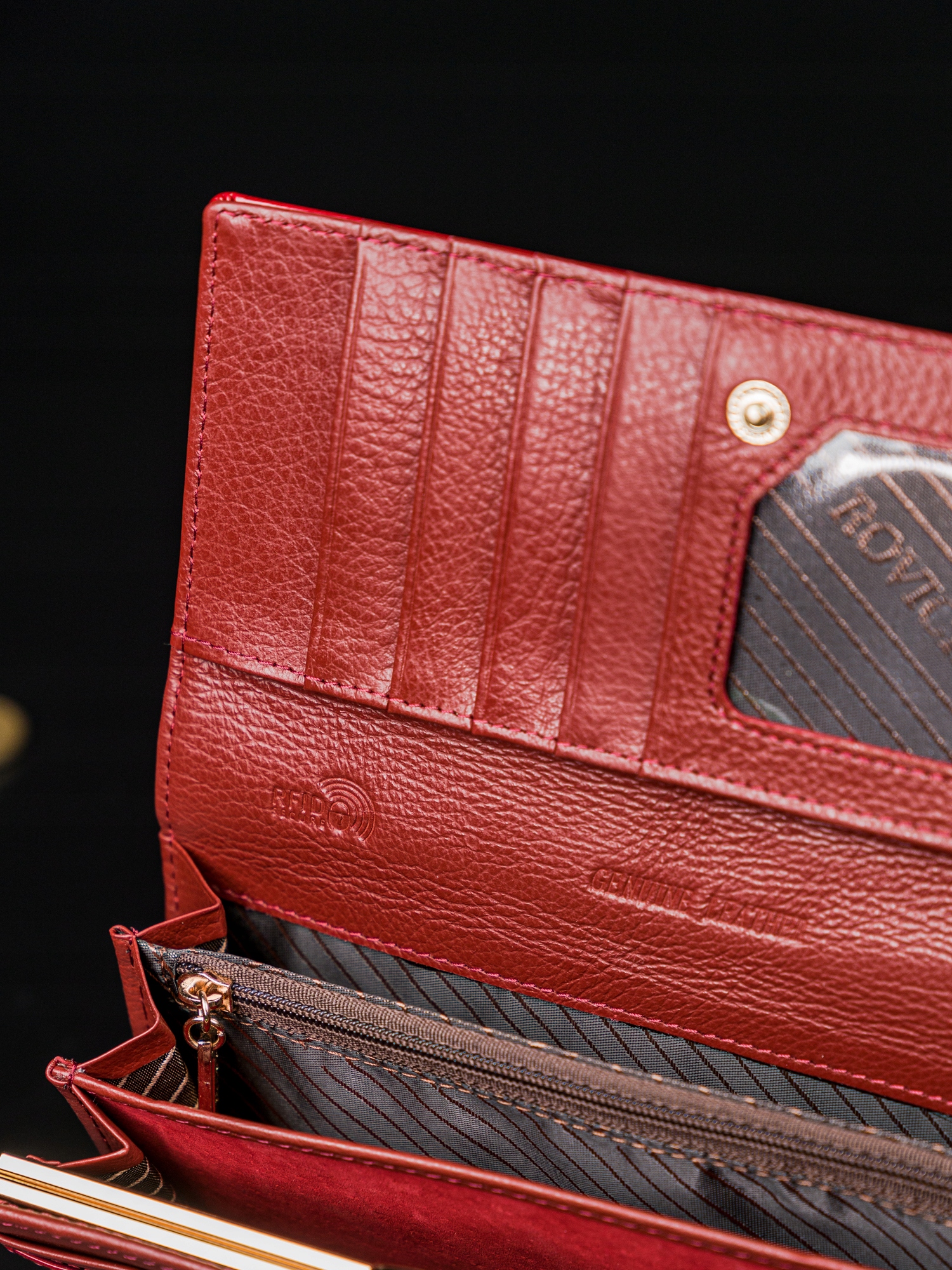 Velika ženska usnjena RFID denarnica, pravo usnje