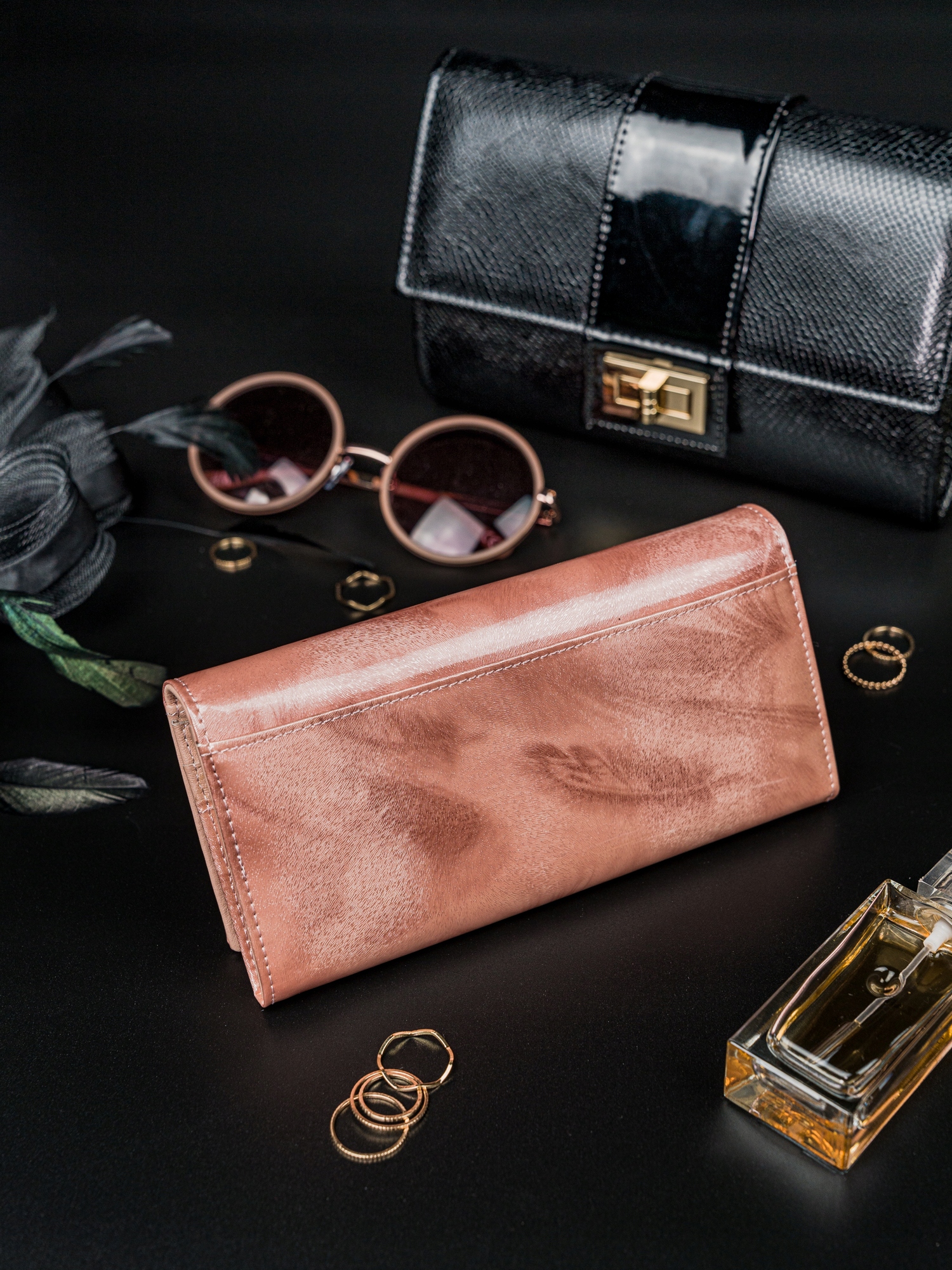 Ta izjemno praktična in elegantna denarnica v edinstvenem odtenku roza, ki odbija svetlobo v več barvah, je kot nalašč za ljubitelje manikure z mačjim očesom. Od danes naprej lahko svoje najljubše stile nohtov uskladite z našimi izdelki.