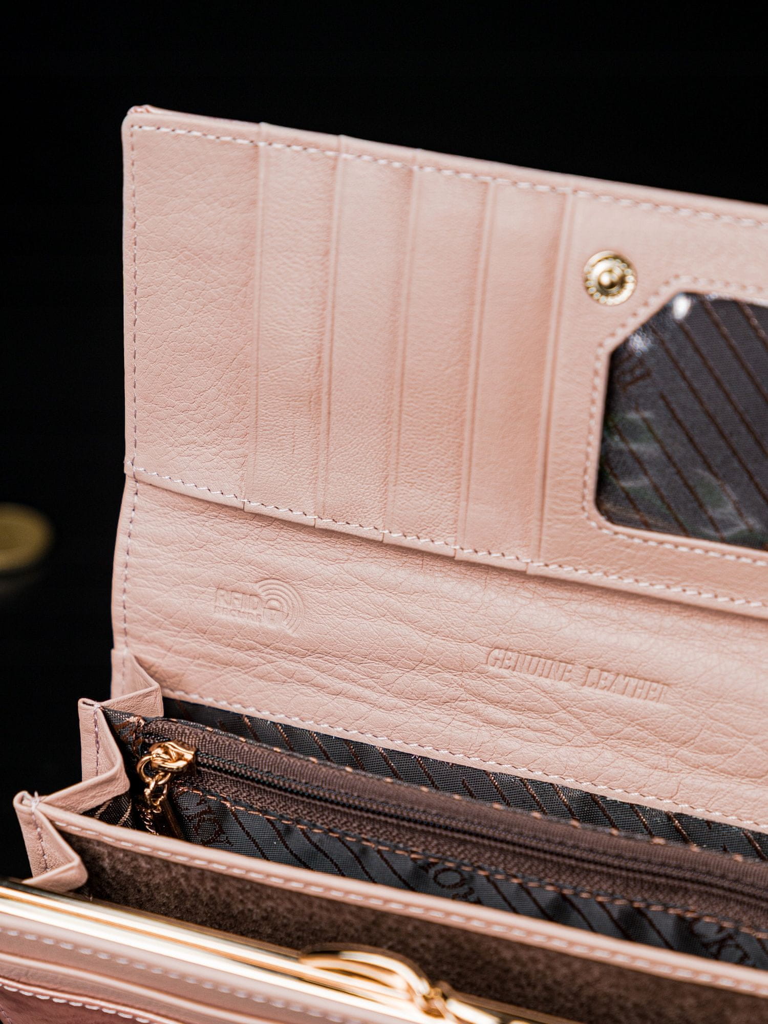 Velika ženska usnjena RFID denarnica, pravo usnje