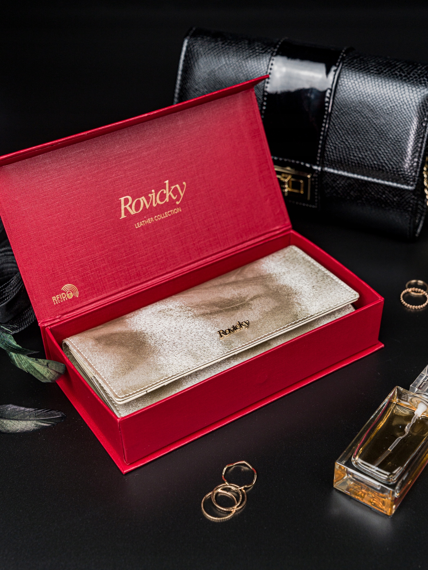 Rovicky® in dodatno zavita v blagovno znamko. To je izjemno pomembno, če je denarnica darilo za ljubljeno osebo. Ni vam več treba izgubljati časa in denarja z iskanjem darilne embalaže. Dovolj je okrasni trak/pentlja in lahko se veselite veselja prejemnika.