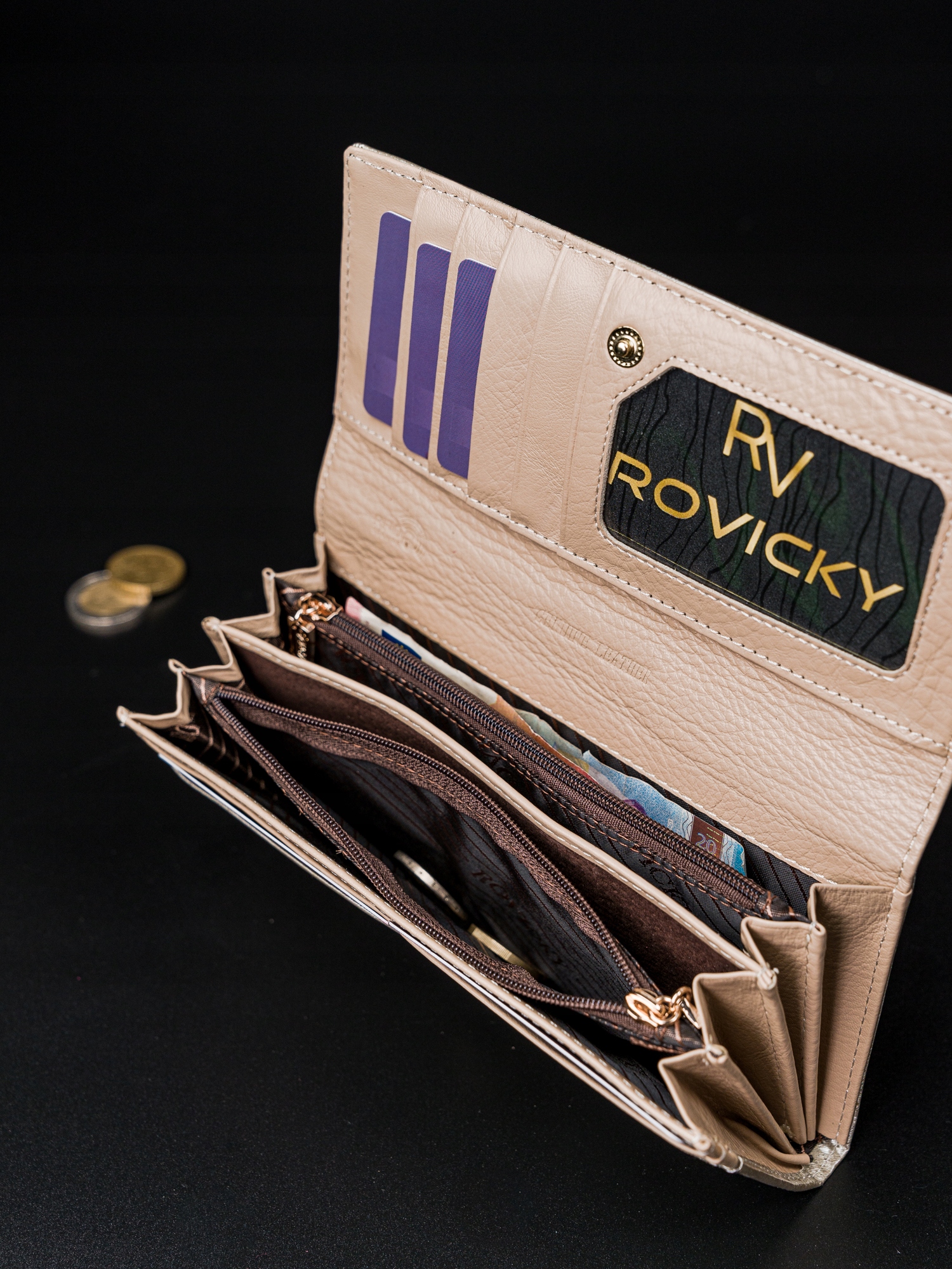 Velika ženska usnjena denarnica znamke ROVICKY