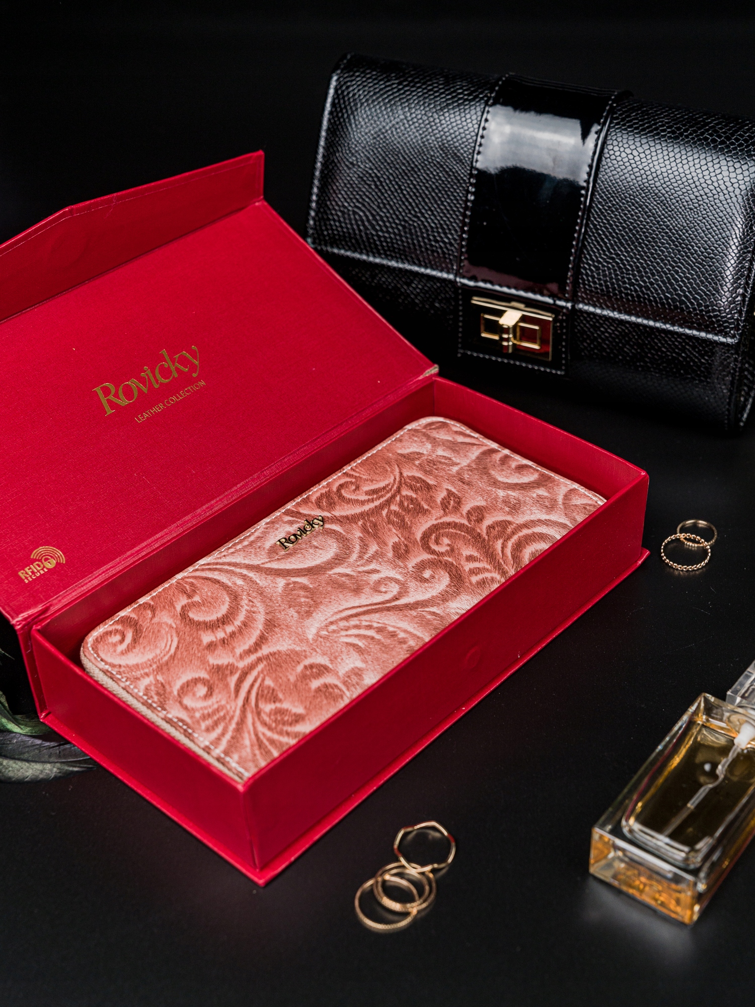Velika ženska denarnica Rovicky z zadrgo, usnje, RFID