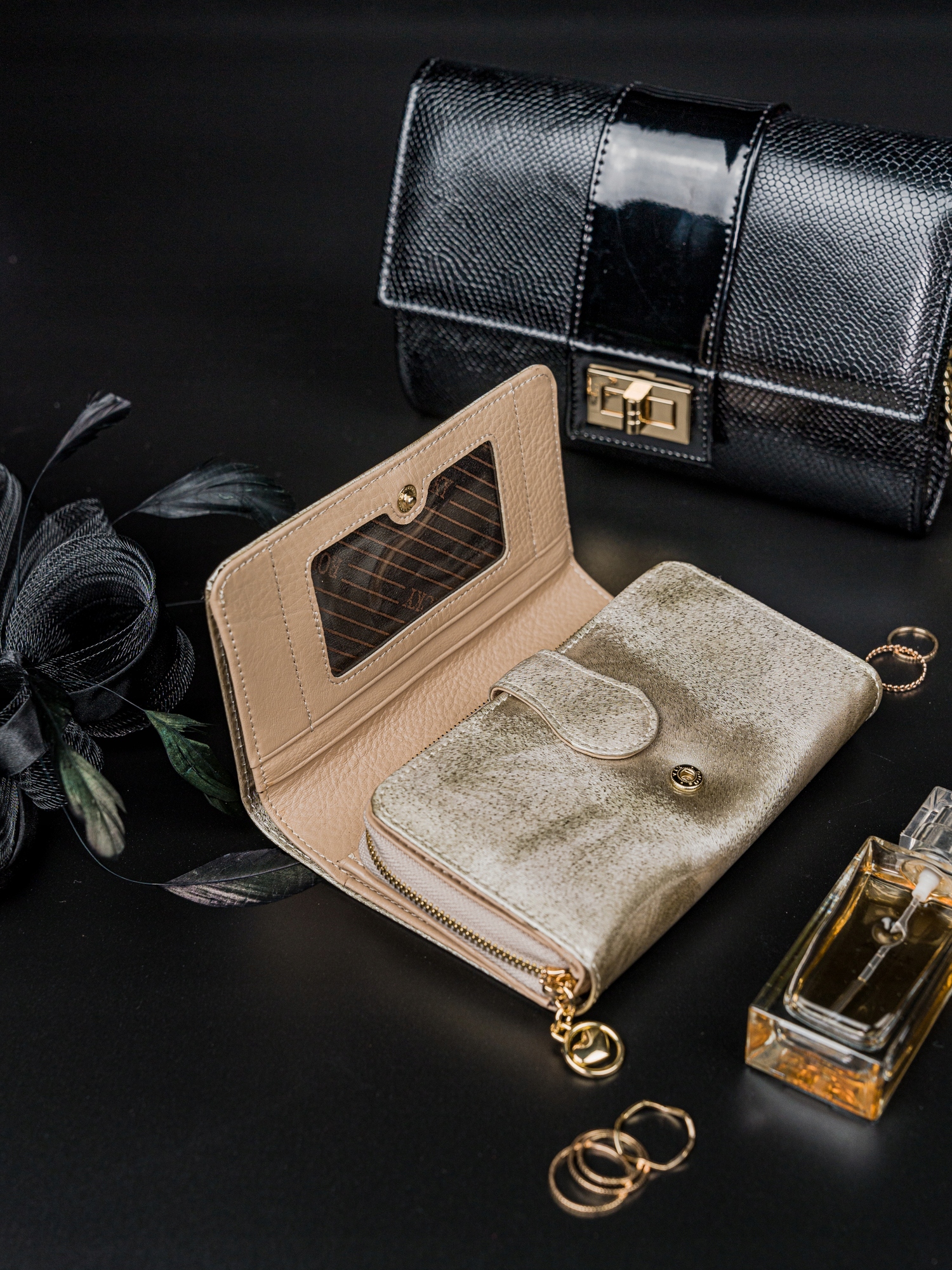 Ta izjemno praktična in elegantna denarnica v edinstvenem odtenku srebrne, ki odbija svetlobo v več barvah, je kot nalašč za ljubitelje manikure z mačjim očesom. Od danes naprej lahko svoje najljubše stile nohtov uskladite z našimi izdelki.