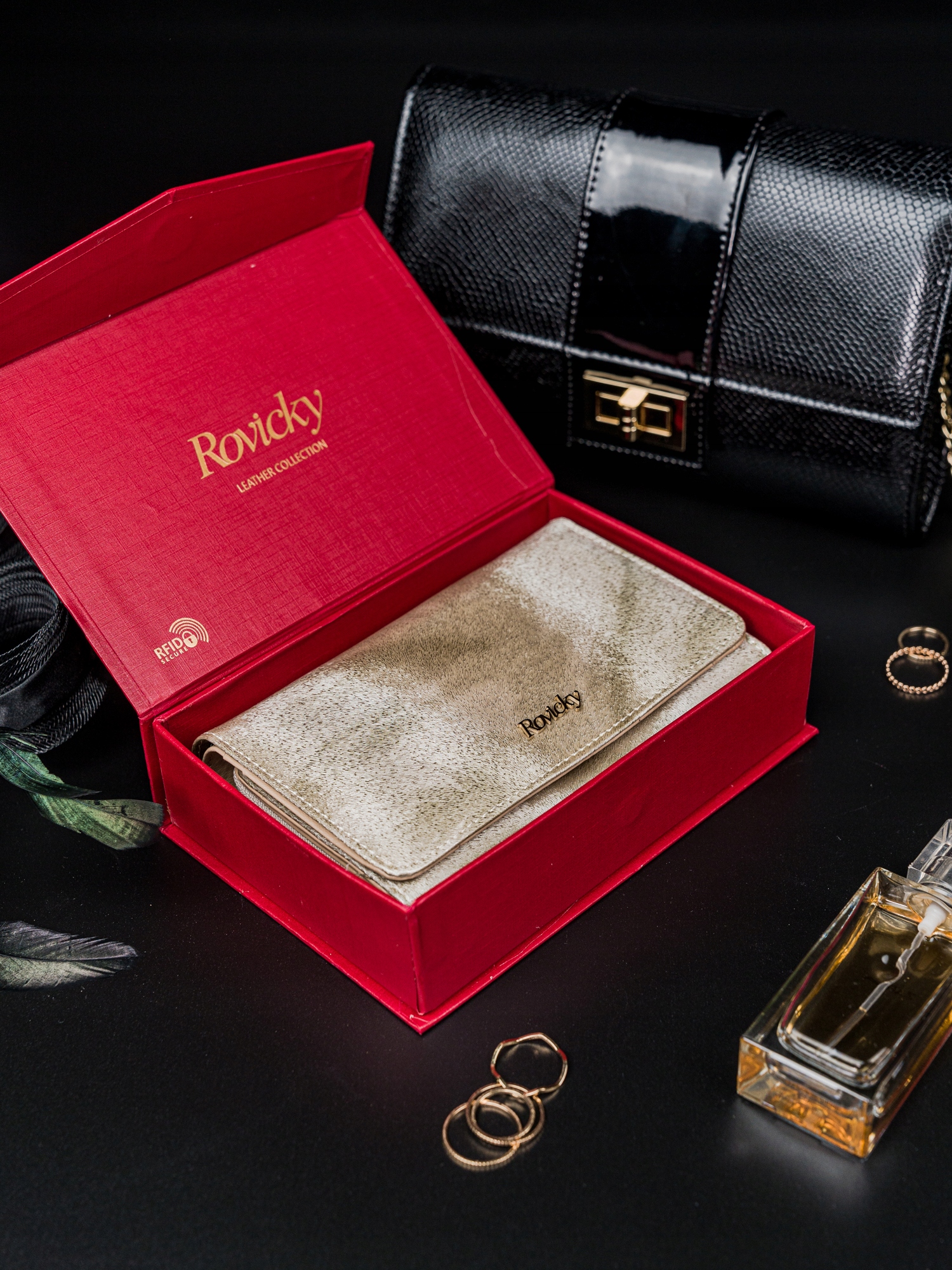 Rovicky® in je dodatno zavita v blagovno znamko. To je izjemno pomembno, če je denarnica darilo za ljubljeno osebo. Ni vam več treba izgubljati časa in denarja z iskanjem darilne embalaže. Dovolj je okrasni trak/pentlja in lahko se veselite veselja prejemnika.