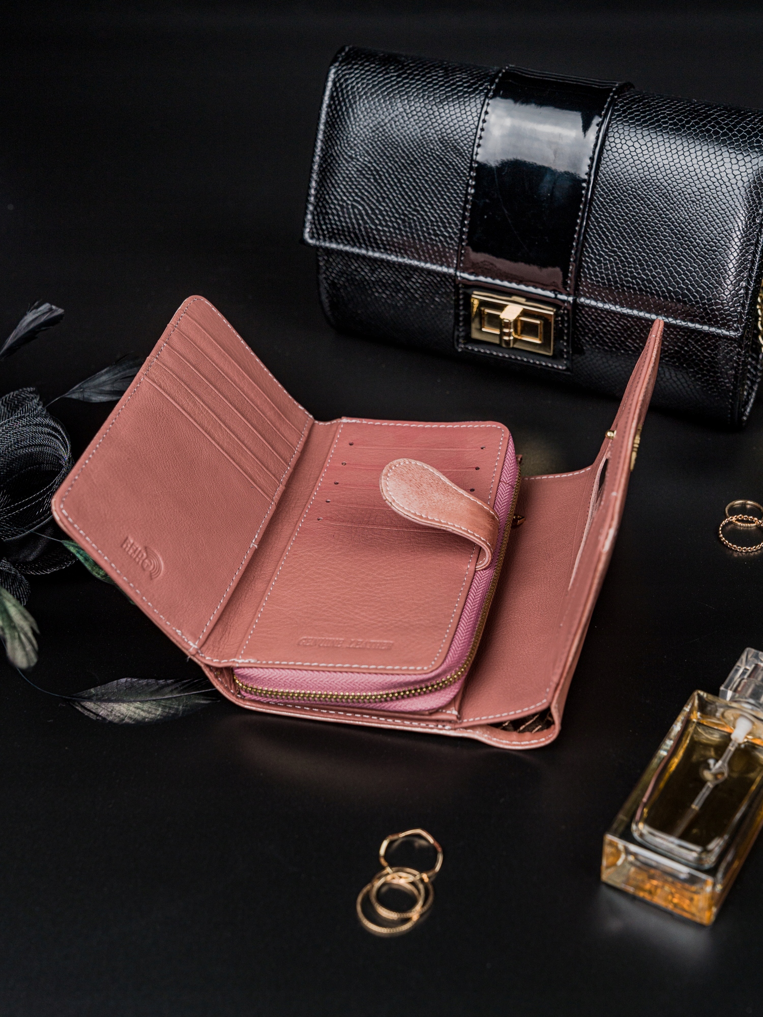 Ta izjemno praktična in elegantna denarnica v edinstvenem odtenku roza, ki odbija svetlobo v več barvah, je kot nalašč za ljubitelje manikure z mačjim očesom. Od danes naprej lahko svoje najljubše stile nohtov uskladite z našimi izdelki.