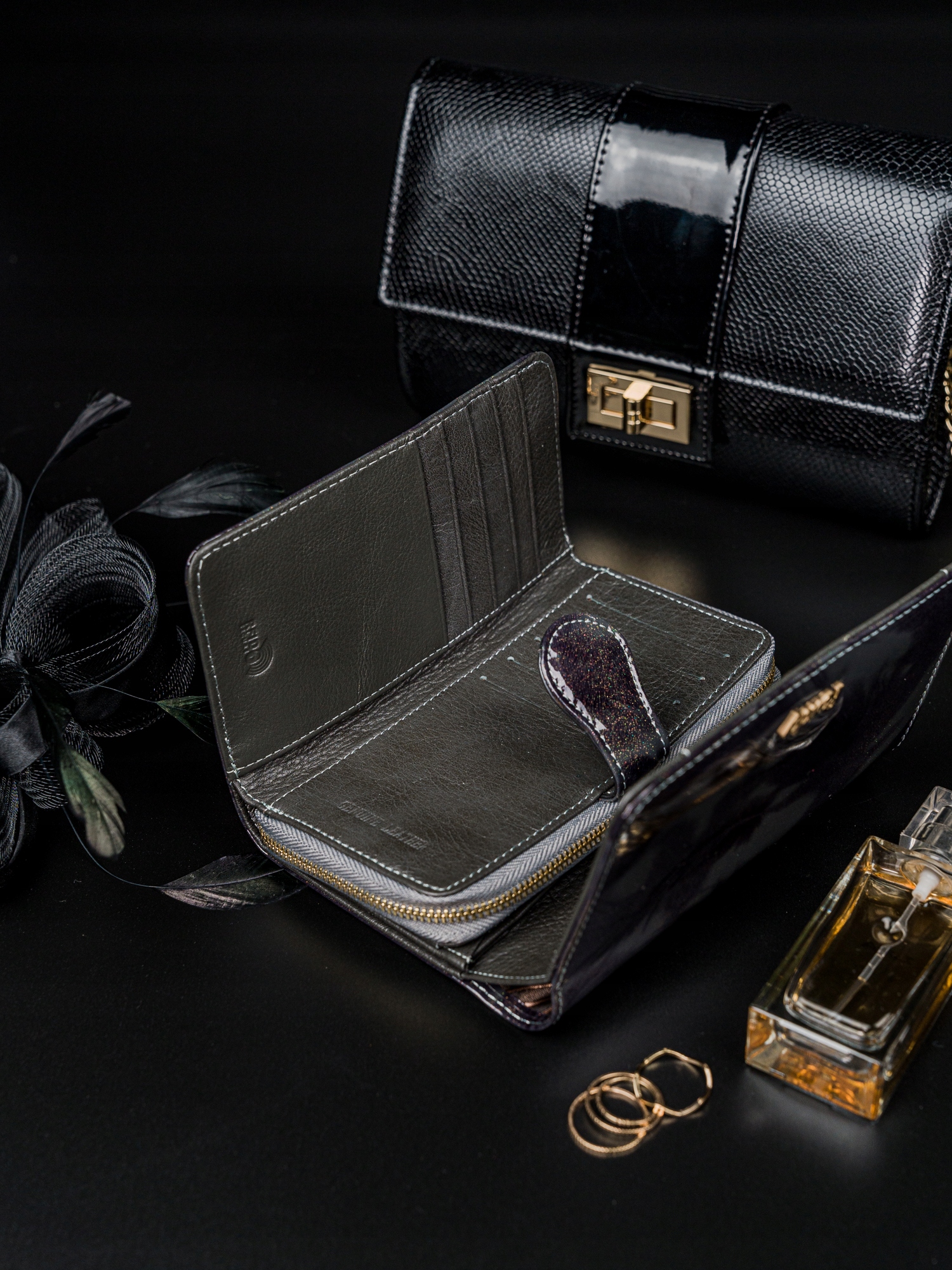 Ta izjemno praktična in elegantna denarnica v edinstvenem odtenku sive, ki odbija svetlobo v več barvah, je kot nalašč za ljubitelje manikure z mačjim očesom. Od danes naprej lahko svoje najljubše stile nohtov uskladite z našimi izdelki.