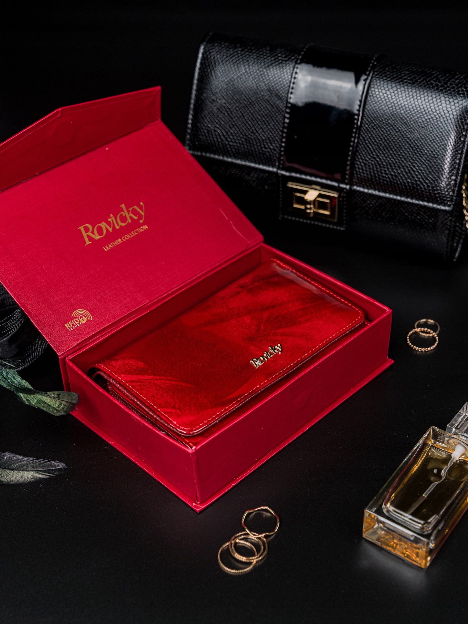 Denarnica je pakirana v ekskluzivni škatli z blagovno znamko Rovicky® in je dodatno zavita v blagovno znamko. To je izjemno pomembno, če je denarnica darilo za ljubljeno osebo.