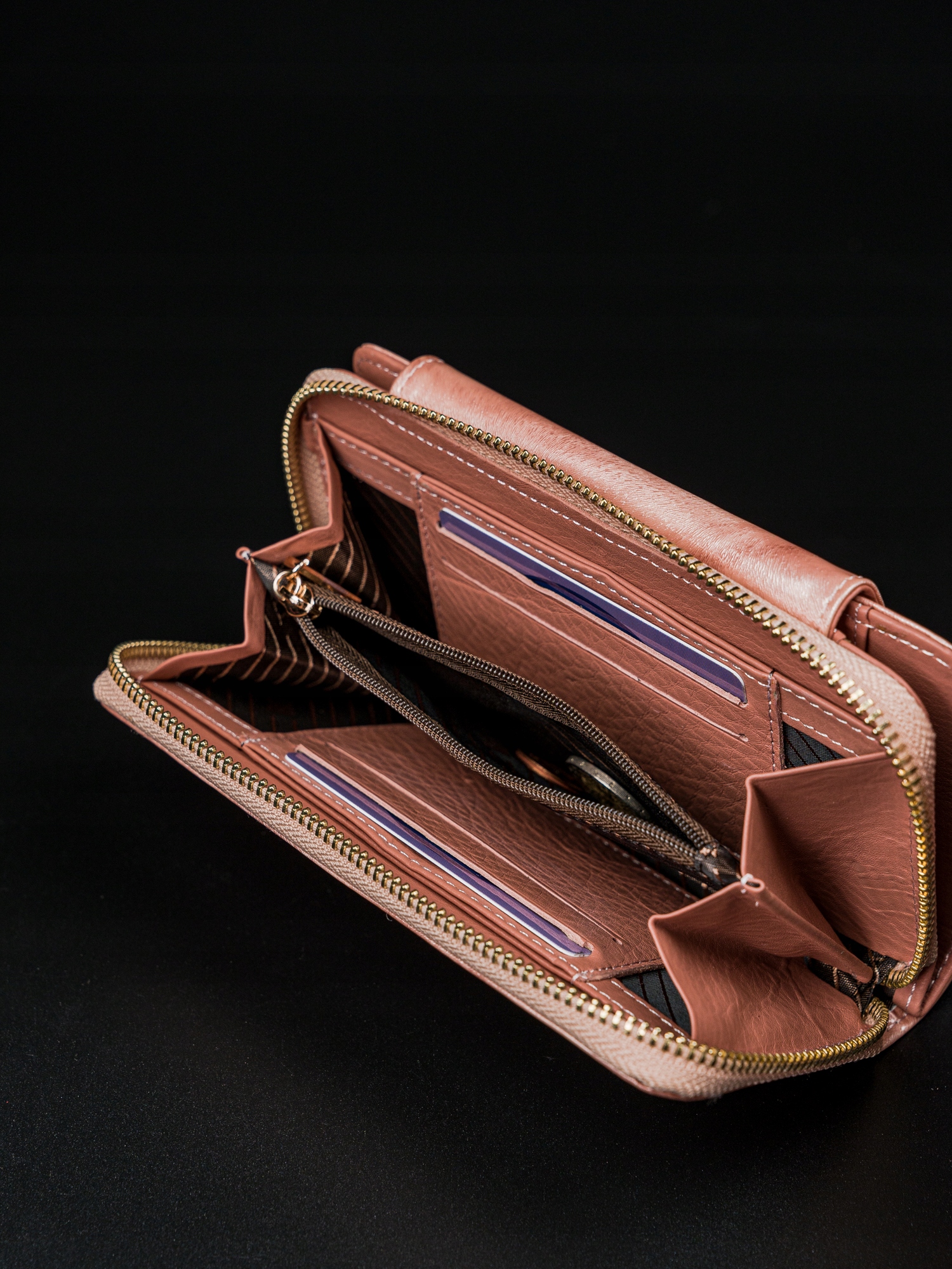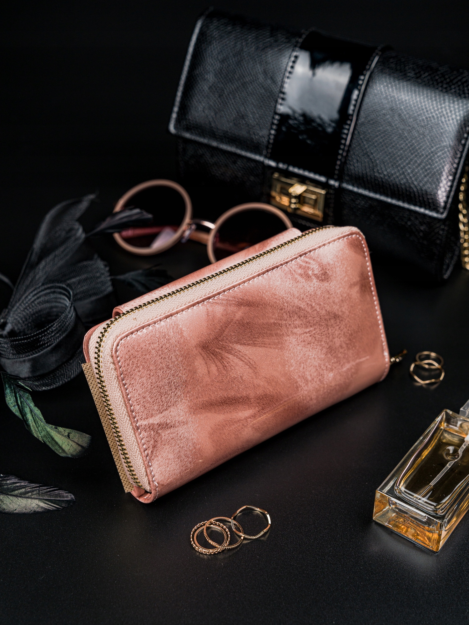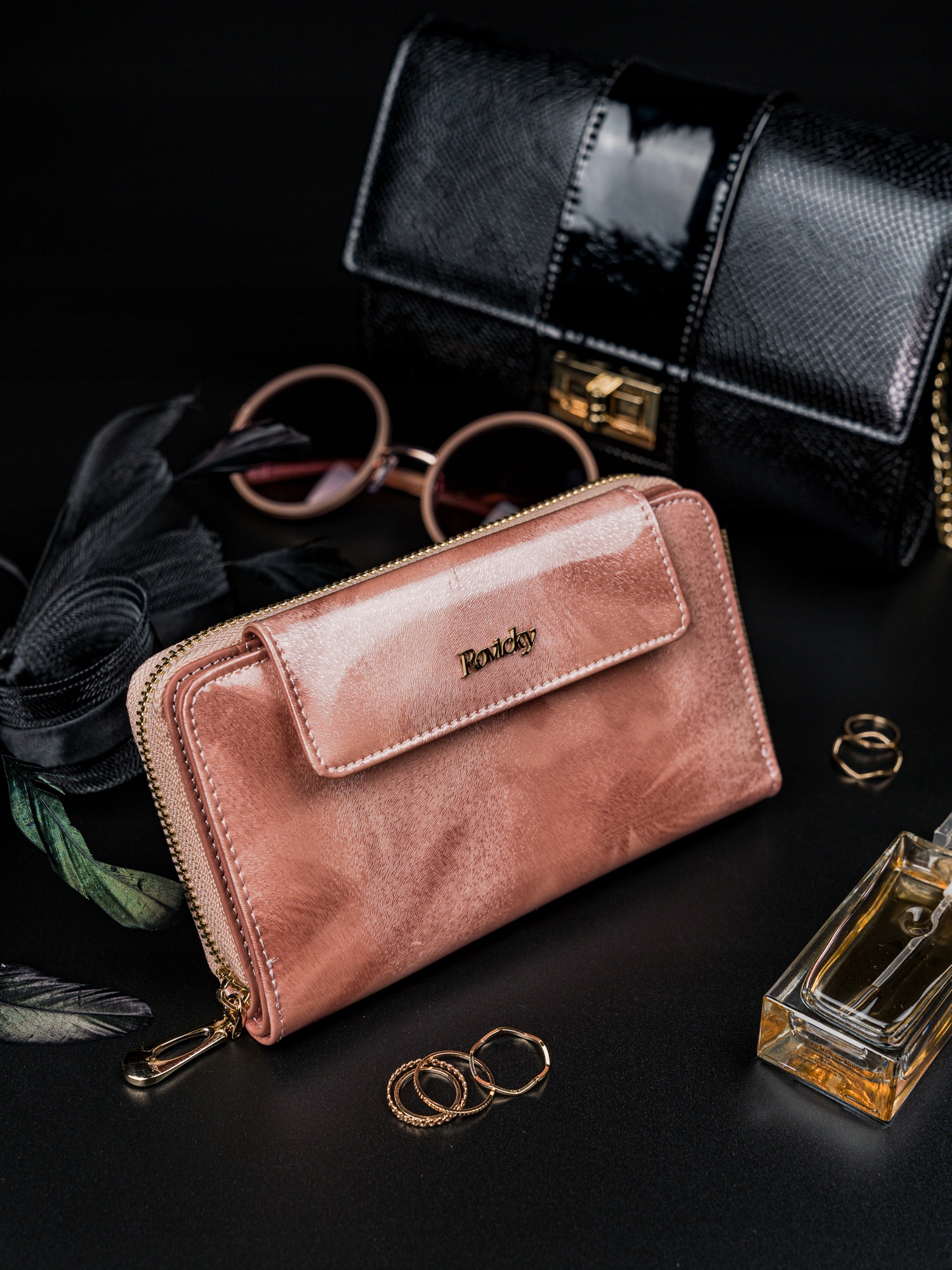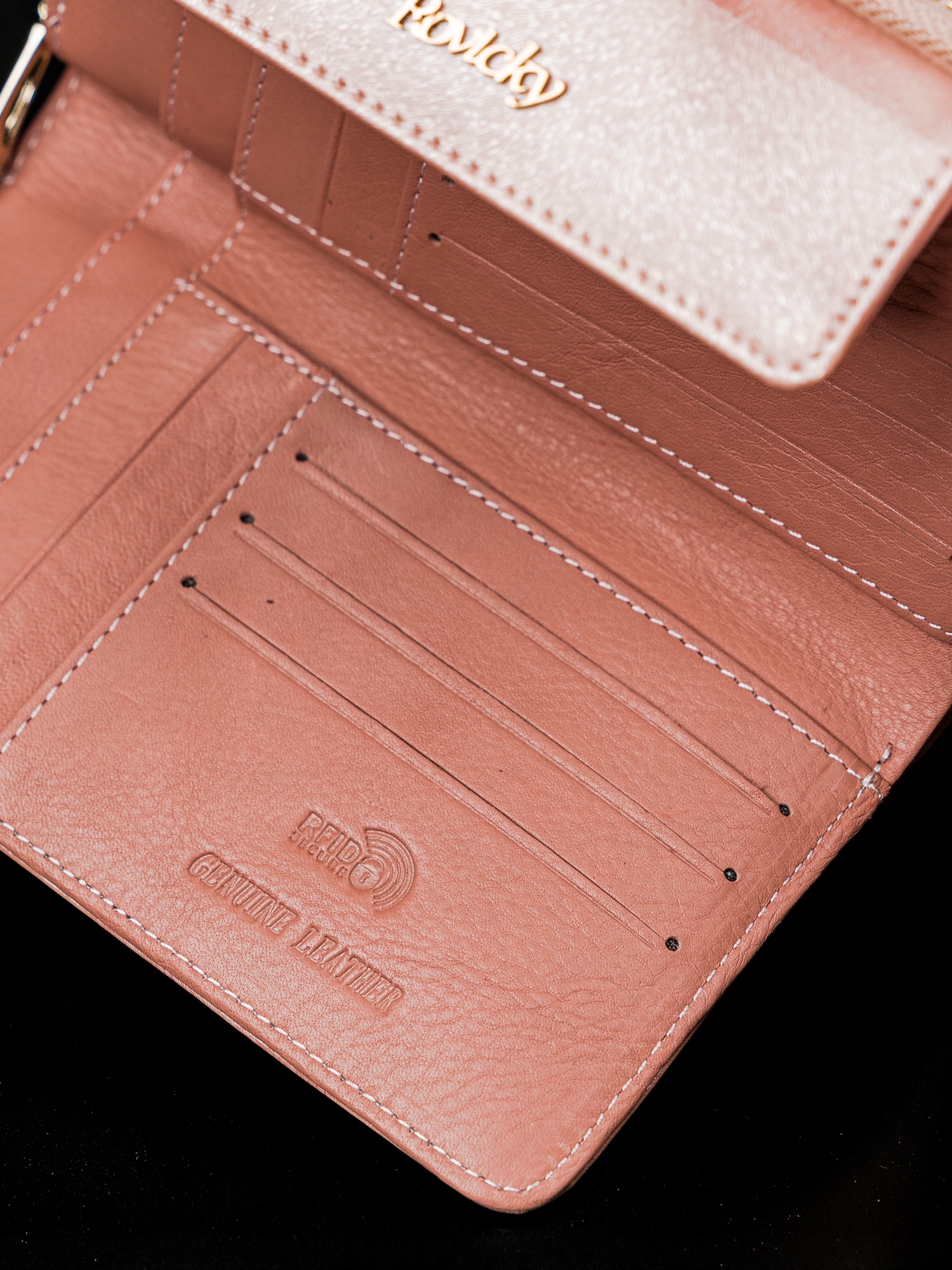 Ta izjemno praktična in elegantna denarnica v edinstvenem odtenku roza, ki odbija svetlobo v več barvah, je kot nalašč za ljubitelje manikure z mačjim očesom. Od danes naprej lahko svoje najljubše stile nohtov uskladite z našimi izdelki.