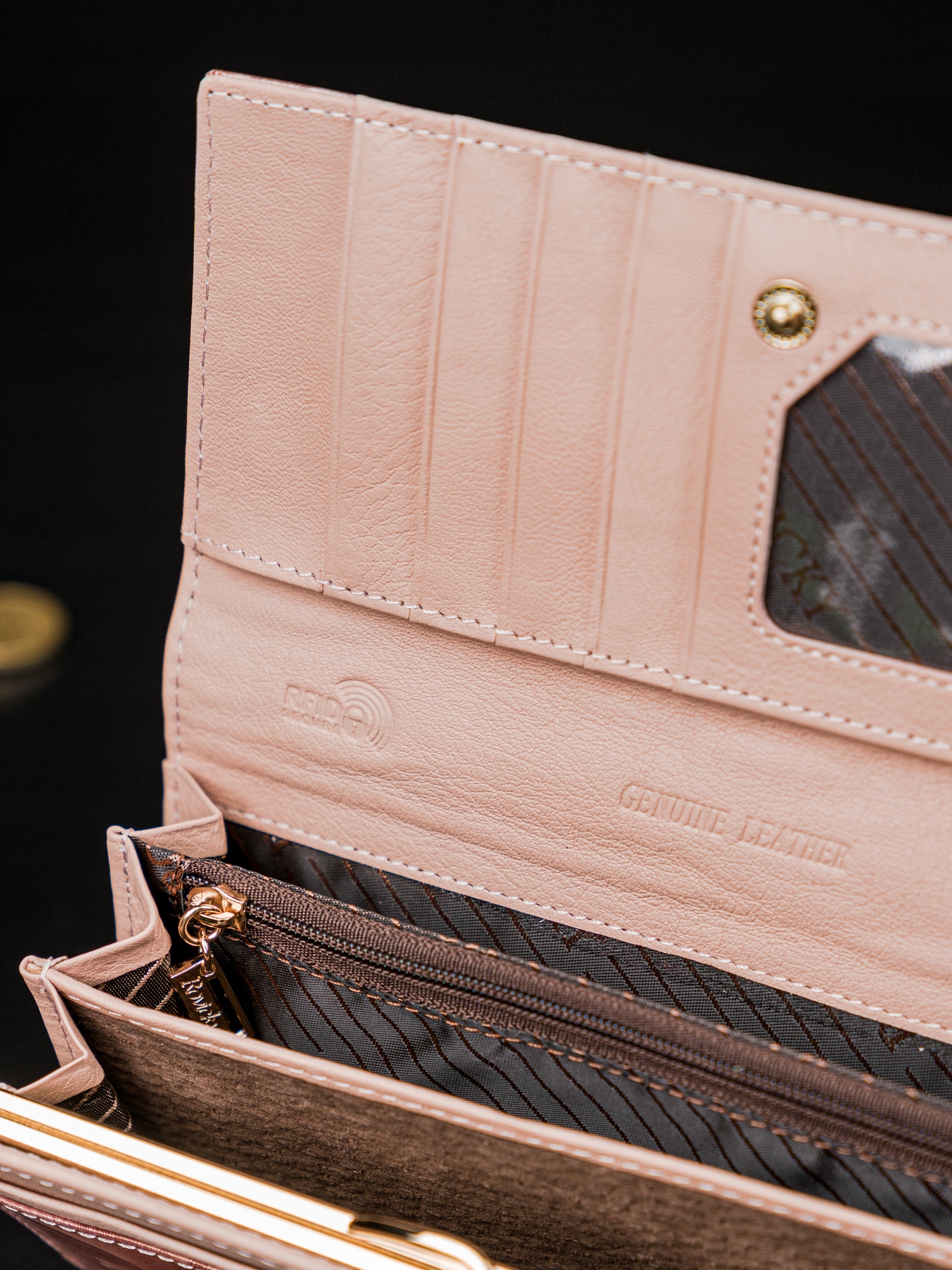 Velika ženska usnjena RFID denarnica, pravo usnje