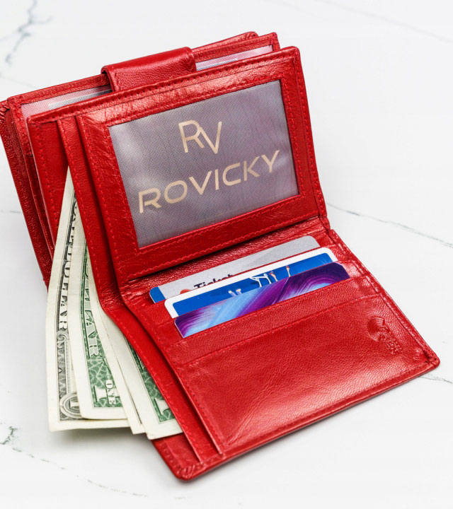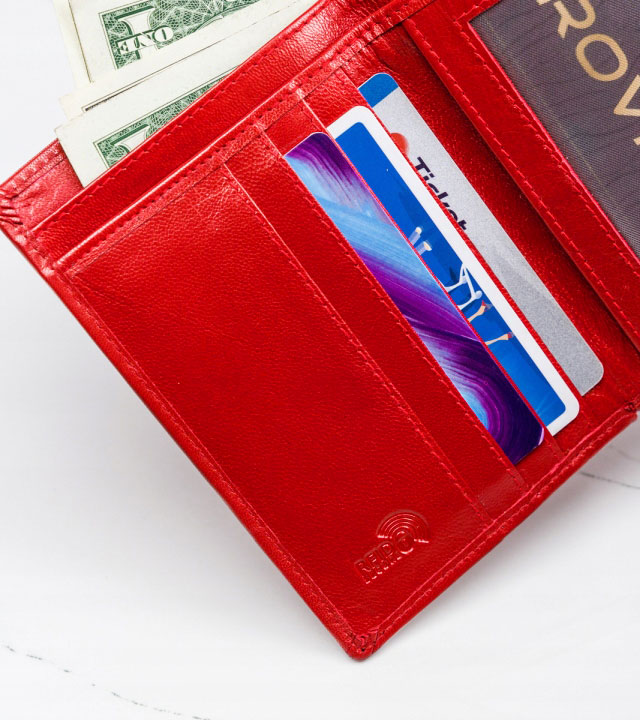 RFID se nanaša na tehnologijo, ki uporablja radijske valove za prenos podatkov. Uporablja se v tehnologiji brezstičnih bančnih kartic. Denarnice, zaščitene z RFID, imajo v notranjosti poseben material, ki ščiti bančne kartice pred napadi RFID bralnikov. Kako deluje: Če imate denarnico v žepu hlač, žepu jakne itd., lahko nekdo postavi čitalnik črtne kode blizu vašega žepa in skenira podatke kartice. Če je vaša kartica v denarnici, zaščiteni z RFID, čitalnik ne bo deloval. Vaše kartice/denar so varni!