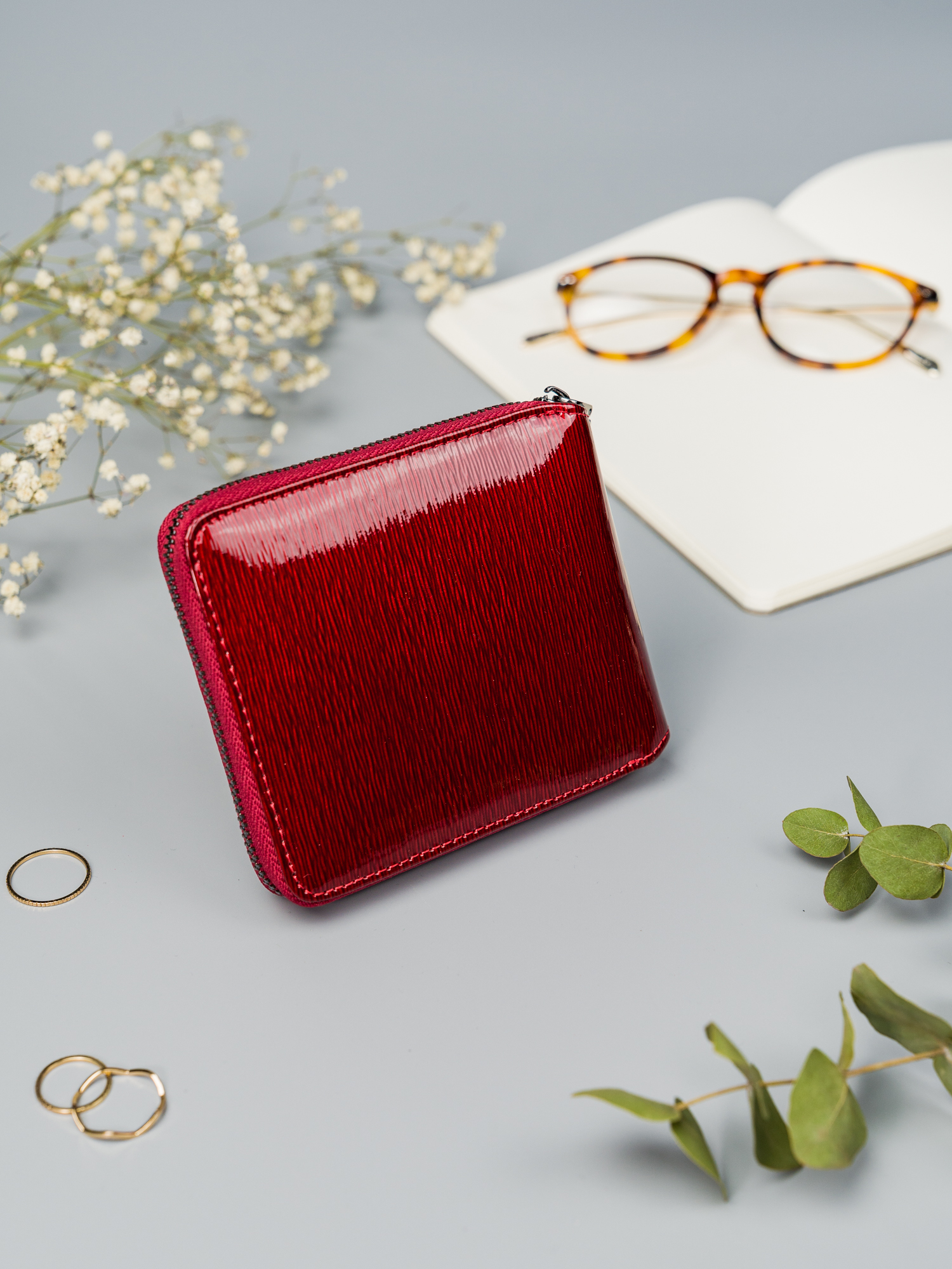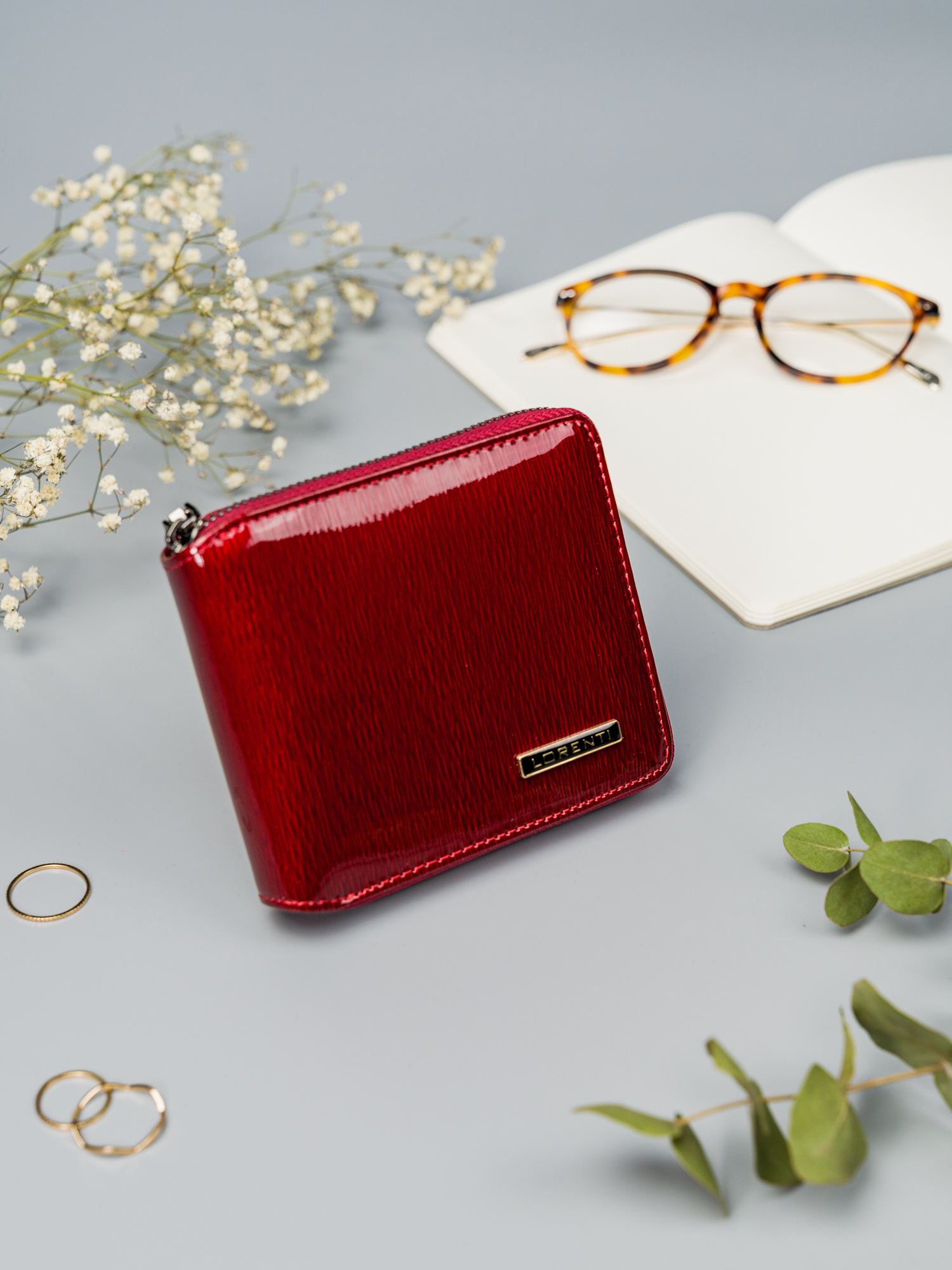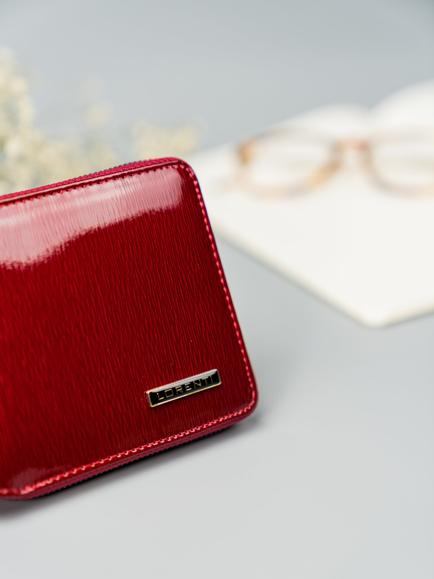 Rdeča denarnica iz lakiranega usnja z zadrgo Lorenti RFID