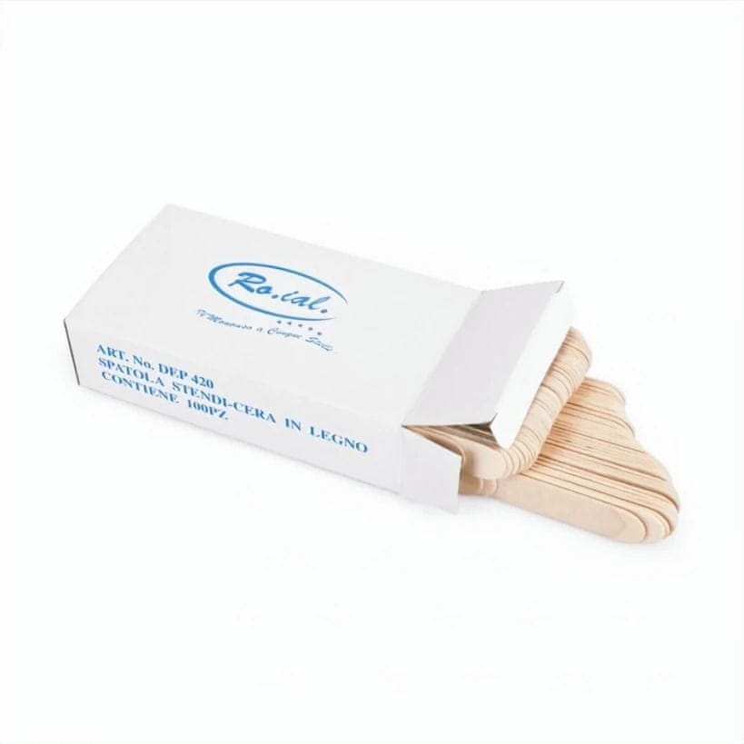 Lesene spatule Ro.ial (180 mm x 18 mm, pakiranje 100 kos) so zasnovane za profesionalno in higienično nanašanje voska pri depilaciji. Dolžina 180 mm in širina 18 mm omogočata enostavno in natančno nanašanje voska na različne dele telesa. Spatule so enkratne in narejene iz visokokakovostnega lesa, kar zagotavlja njihovo trpežnost in stabilnost med uporabo. Zaradi svoje oblike in velikosti omogočajo udobno in natančno nanašanje voska brez nevarnosti prekomernega nanašanja ali draženja kože. Pakiranje 100 kosov je idealno za profesionalne kozmetične salone, kjer je potreben velik razpon uporabe, hkrati pa zagotavlja visoko stopnjo higiene in enostavnost pri uporabi.