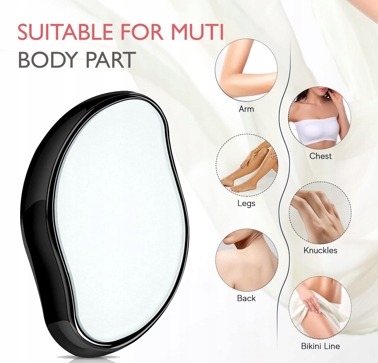 Kristalna radirka za odstranjevanje dlak je izdelana iz trdnega in trpežnega ABS materiala, kar zagotavlja dolgo življenjsko dobo in enostavno uporabo. Njena ergonomska, obokana zasnova se popolnoma prilega roki, zaradi česar je odstranjevanje dlak še udobnejše. Gladka površina naprave omogoča natančno manevriranje in zagotavlja udobje tudi med daljšimi tretmaji.