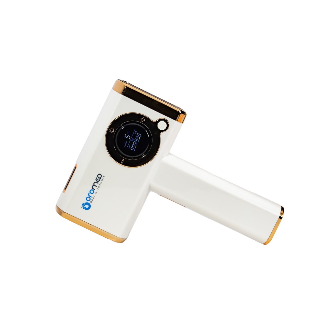 ORO-IPL ICE OROMED laserska naprava za odstranjevanje dlak uporablja tehnologijo intenzivne pulzne svetlobe (IPL), ki deluje tako, da absorbira svetlobo skozi melanin v lasnem mešičku. Ustvarjena toplota učinkovito poškoduje lasni mešiček, ne da bi pri tem poškodovala okoliško tkivo. To omogoča napravi, da postopoma redči dlake in jih z redno uporabo skoraj popolnoma odstrani. IPL izboljša tudi videz kože, zmanjša videz por in drobnih gubic ter spodbuja elastičnost.