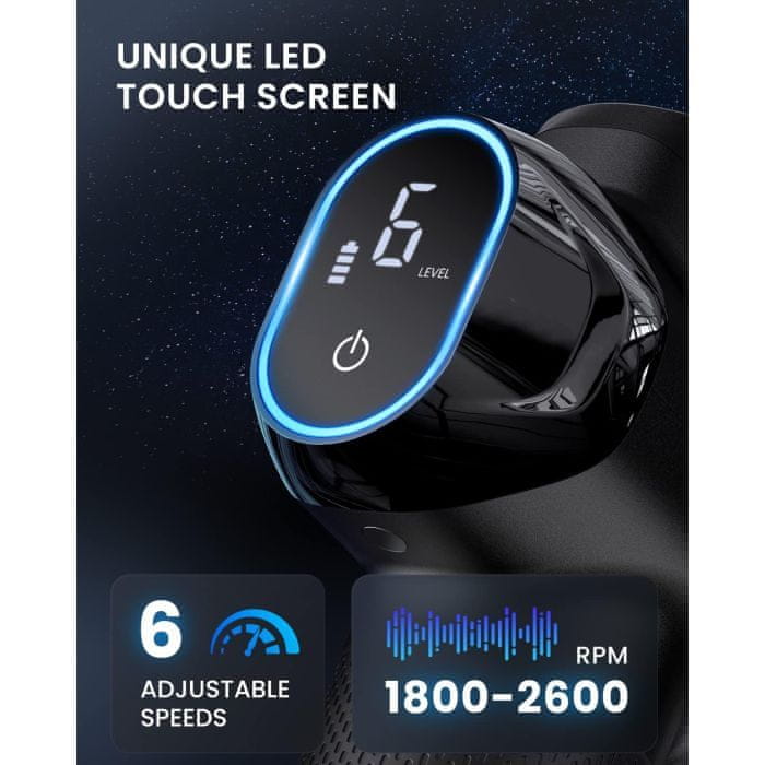 Izjemno tihi in LED zaslon na dotik: Gymtastic masažna pištola je bila posebej razvita z brezkrtačnim motorjem z visokim navorom, ki zagotavlja globoko in močno, visoko penetracijo ter nizko raven hrupa (35 dB – 55 dB) za uporabo v pisarni ali telovadnici brez povzročanja motenj. Profesionalna gimnastična masažna pištola z visoko ločljivim zaslonom LED na dotik, na katerem lahko kadar koli jasno vidite stopnje hitrosti in preostalo moč.