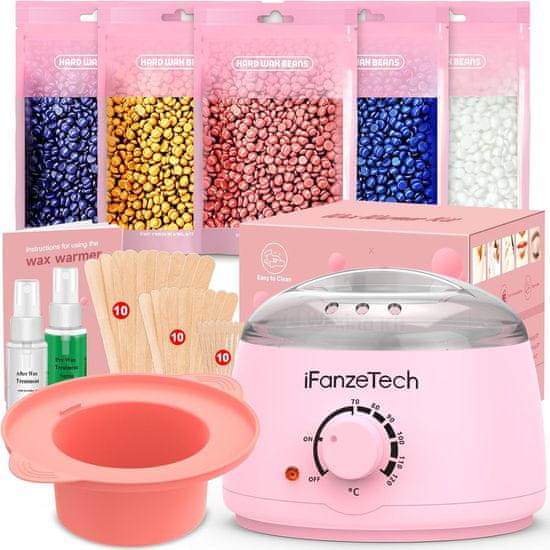 slomart Komplet za depilacijo doma: Topli vosek - grelec z silikonsko posodo, 5 voskov za obraz, intimne dele, telo, set za ženske in moške.