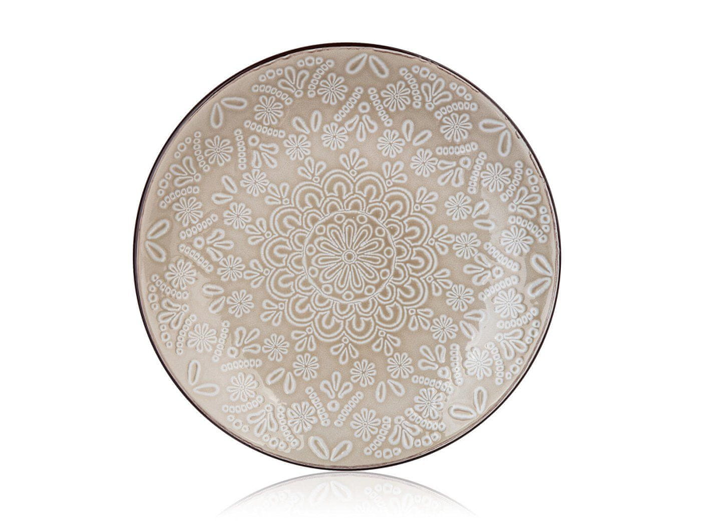 Sladkorni krožnik SHAPE, krem barve z okrasom čipke, iz keramike. Lahko se uporablja v mikrovalovni pečici in pomivalnem stroju za običajno domačo uporabo.