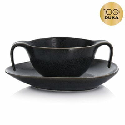 Omejena serija Duka Time Black navdušuje s svojo brezčasno obliko v grafitno modrih tonih. Oblika je nanesena s tehniko reaktivne glazure, zato se lahko posamezni elementi med seboj razlikujejo. S skledo Duka Time Black bodo vaše pripravljene juhe končno dobile pravo kuliso. Izdelana je iz porcelana, ki bo poudaril apetitni videz postrežene juhe ali boršča, njena elegantna oblika pa se bo odlično podala tudi k najbolj elegantnim priložnostim. V kompletu s skodelico Duka Time Black boste dobili popolnoma ujemajoč se krožnik, ki dopolnjuje njeno elegantno zasnovo in omogoča priročno razporeditev vseh dodatkov, ki jih postrežete k juhi. Po končanem obroku lahko skodelico Duka Time Black preprosto operete v pomivalnem stroju, zato je primerna za vsako funkcionalno kuhinjo.