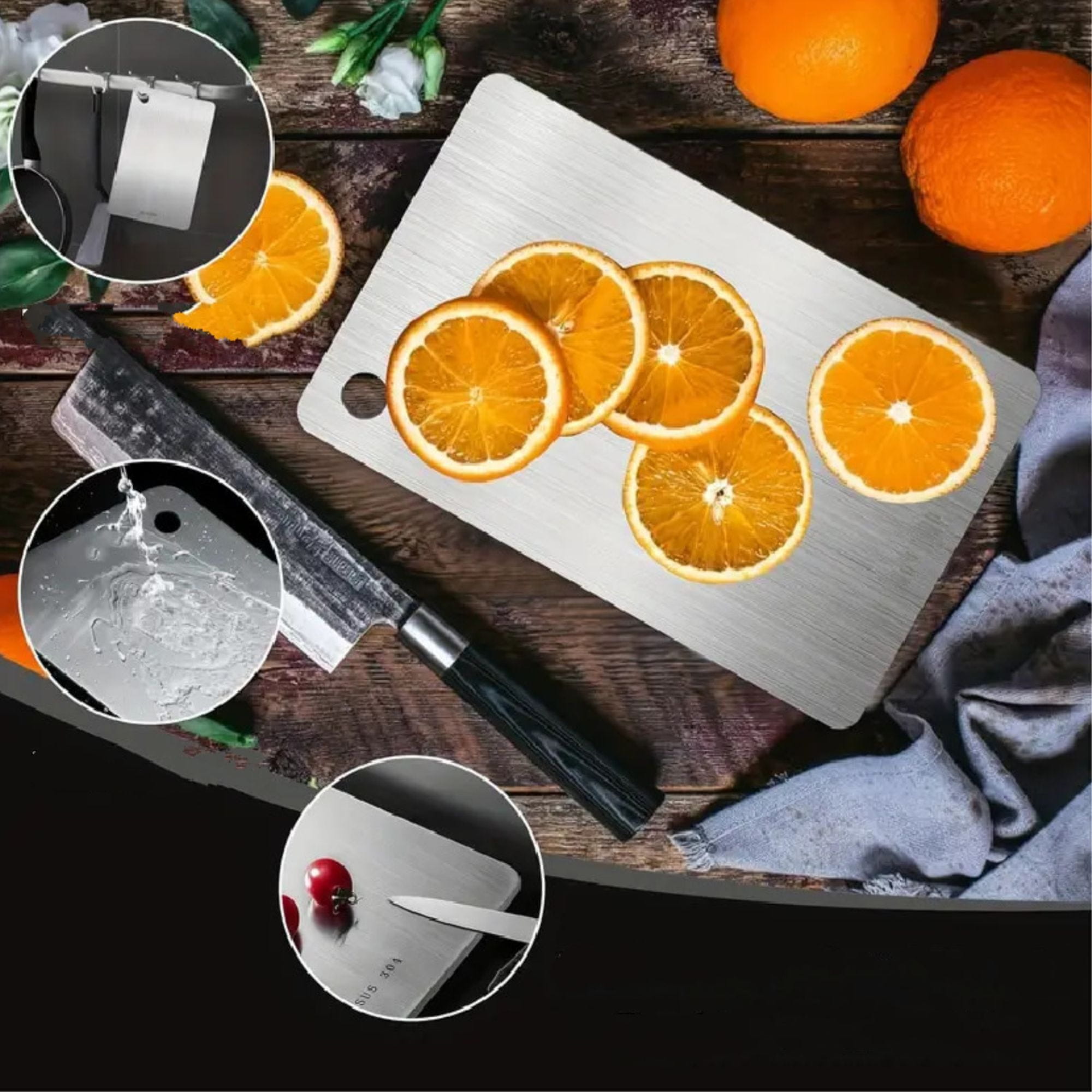 Ta deska za rezanje je izdelana iz 100-odstotnega nerjavečega jekla, zato je odporna na obrabo in obljublja dolgotrajno uporabo brez degradacije.