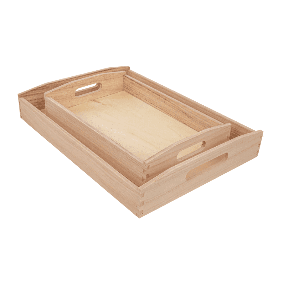 • Komplet vsebuje: 2 kosa lesenih pladnjev z dimenzijami 39×38 cm in 30×20 cm