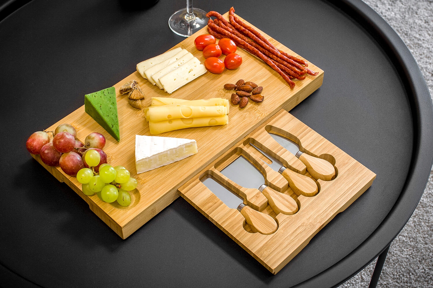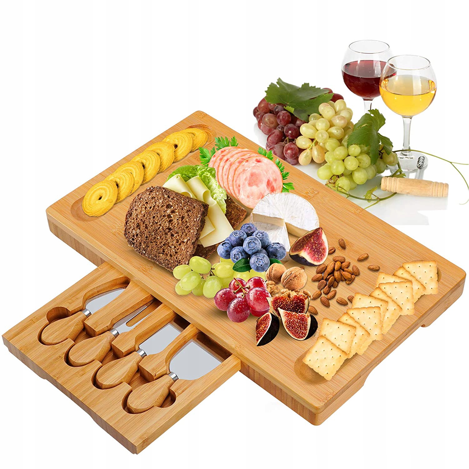 ☘️BAMBUSOV DESK ZA SIR, NAREZKE IN PRIGRIZKE Z KOMPLETOM NOŽEV☘️