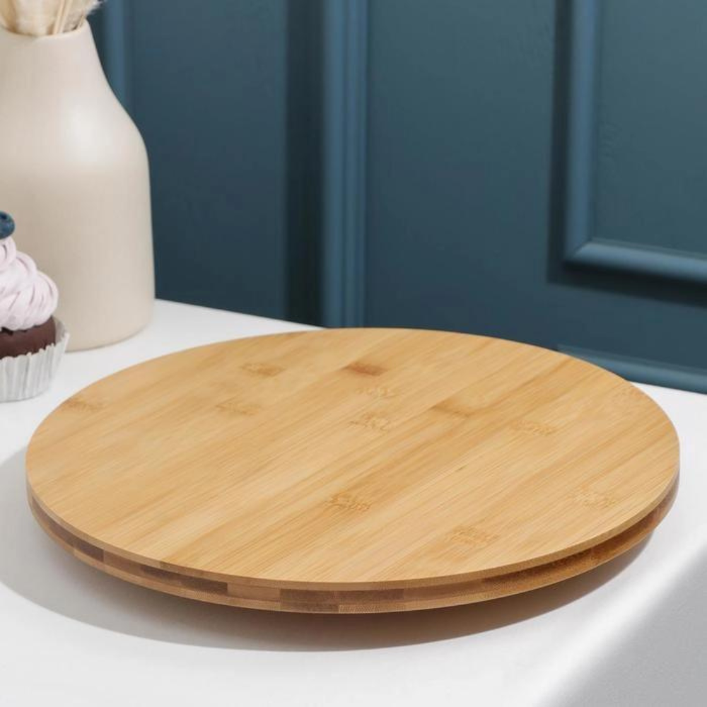 vam bo omogočila estetsko serviranje jedi in navduševanje povabljenih gostov. Okrogla, vrtljiva oblika deske olajša serviranje in deljenje vaših najljubših jedi. ☘️EKSKLUZIVNO BAMBUS – 40 cm☘️ ➡️ Deska je izdelana iz najkakovostnejšega, izjemno trpežnega bambusovega lesa.