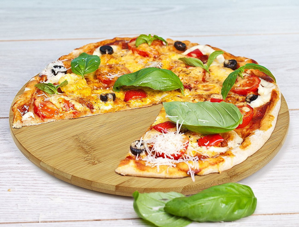 shumee BAMBUSOVA VRTEČA DESKA ZA REZANJE PICE 40 PREMIUM