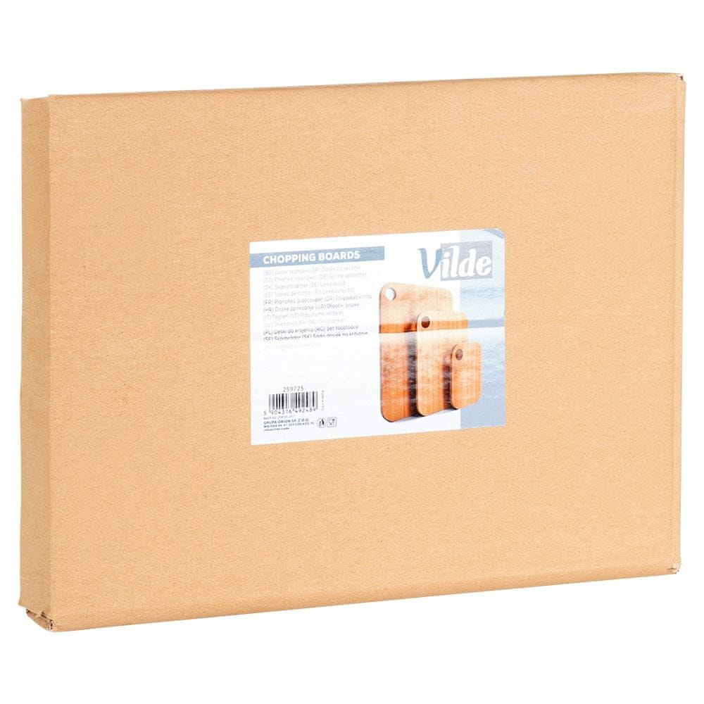Komplet treh bambusovih desk za rezanje v treh velikostih. Te deske so neverjetno uporabne v vsaki kuhinji. Trdno izdelane so, odporne na vlago in deformacije. Vaš pult bodo ohranile čist in ga zaščitile pred praskami. Uporabite jih lahko tudi kot podstavek za odlaganje loncev po kuhanju ali za vroče jedi neposredno iz pečice. Originalni izdelek Vilde. Izdelano v skladu z evropskimi standardi.