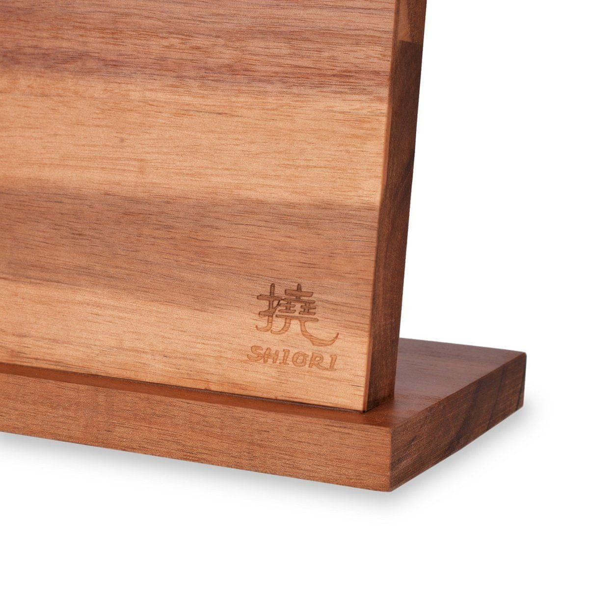 Shiori 撓 Akashia magnetna deska za nože iz akacijevega lesa.    Deska služi kot stojalo in omogoča hiter dostop do nožev med kuhanjem. Noži se pritrdijo na stojalo zahvaljujoč močnemu magnetu, ki se nahaja znotraj deske. Plošča lahko zdrži do5 noževTa lesena plošča je zaradi svojega značilnega zrna zelo privlačna. Skupaj z noži bo tudi eleganten, dekorativen dodatek za vsako kuhinjo.