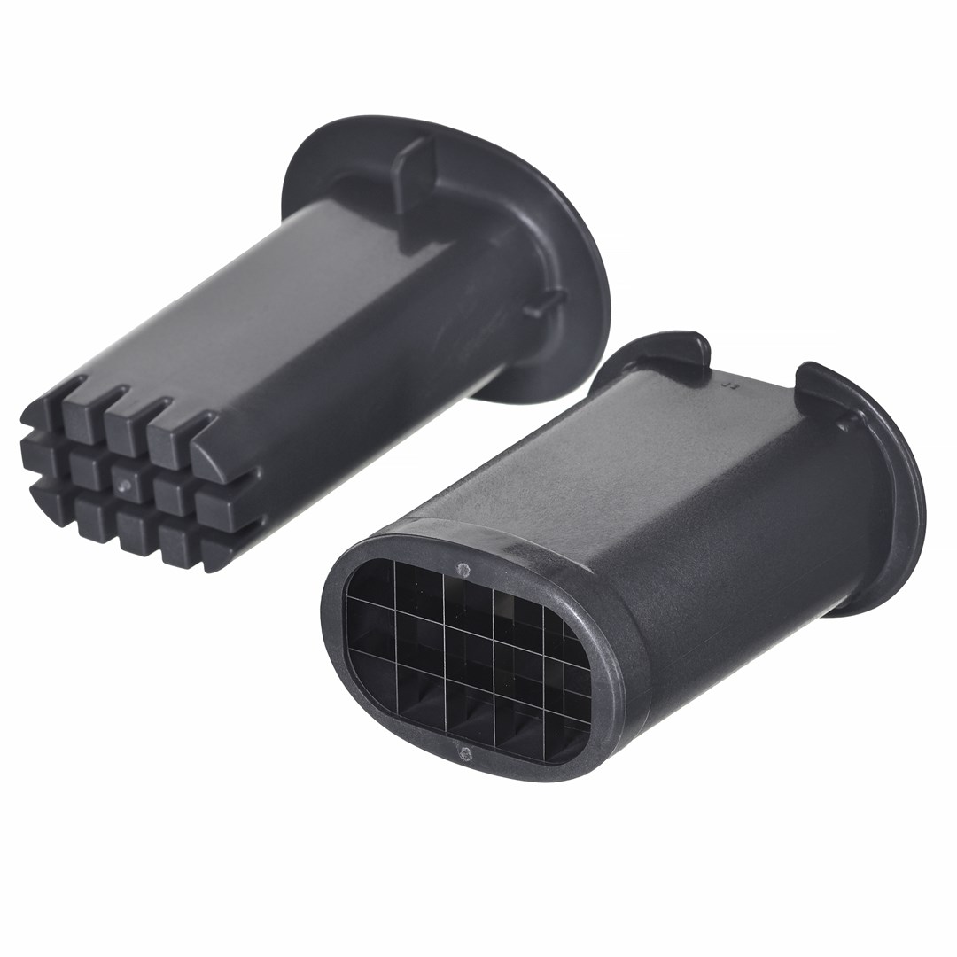 Reže na kvadrate. Z nastavkom lahko narežete na popolne kocke, ne da bi vam bilo treba sekljati ročno.