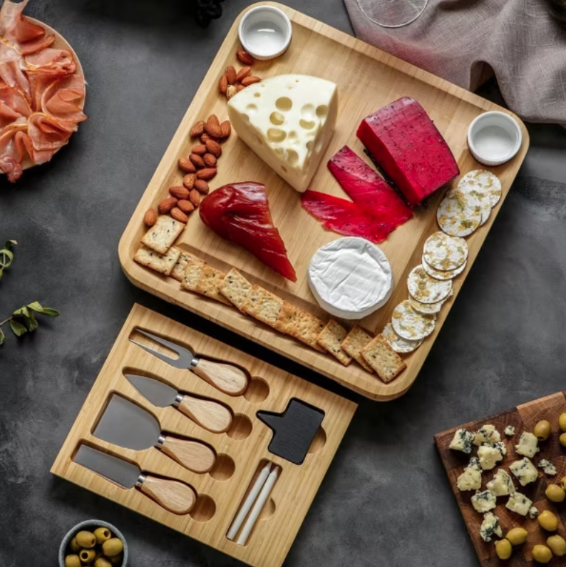 shumee Sirna deska, pladenj za prigrizke, narezki, jedilni pribor, praznično darilo, 33x33