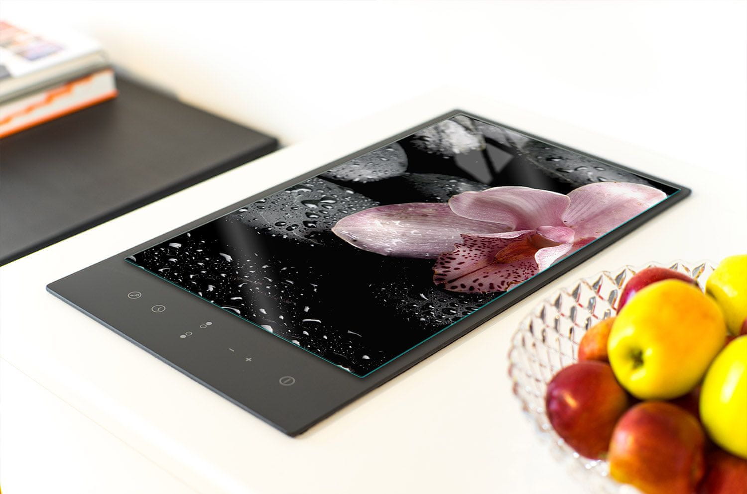 vzdržljivost tudi pri visokih temperaturah. Steklena površina je gladka in odporna na obremenitve z rahlo zaobljenimi vogali. Edinstvena tehnologija UV-tiskanja naredi barve grafike žive in nasičene