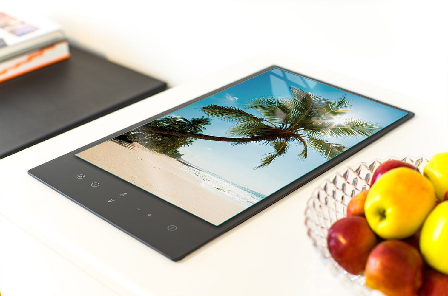 vzdržljivost tudi pri visokih temperaturah. Steklena površina je gladka in odporna na obremenitve z rahlo zaobljenimi vogali. Edinstvena tehnologija UV-tiskanja naredi barve grafike žive in nasičene