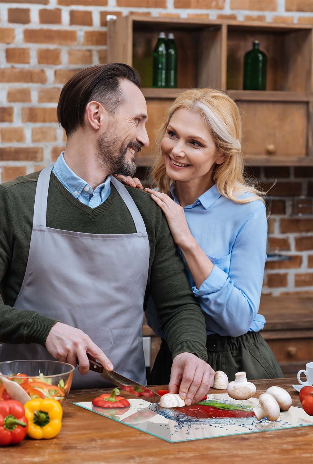 na steklu. Zaradi tega plošča pritegne poglede in postane edinstven okras vaše kuhinje. Tisk je na hrbtni strani stekla, kar dodatno podaljša življenjsko dobo
