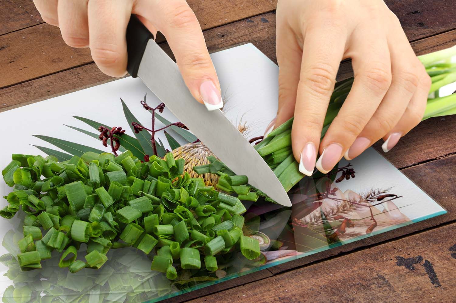 – ščiti vašo indukcijsko, keramično ali plinsko kuhalno ploščo pred umazanijo in praskami. Steklena deska za rezanje