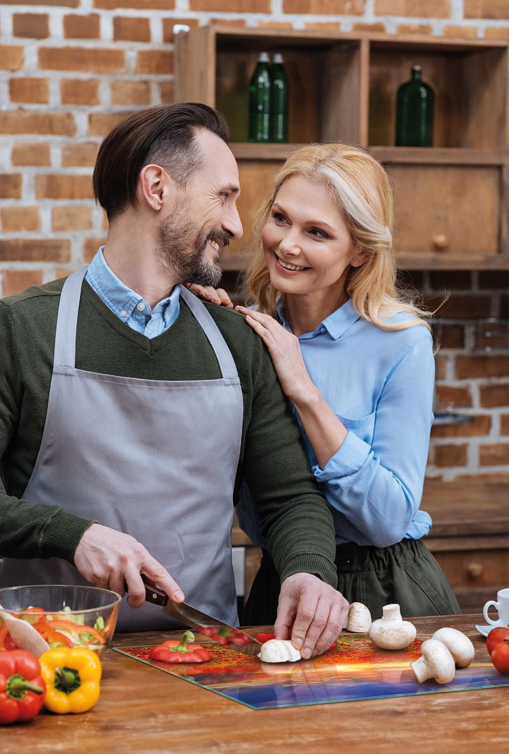 žive in nasičene na steklu. Zaradi tega plošča pritegne poglede in postane edinstvena dekoracija za vašo kuhinjo. Tisk se nahaja na hrbtni strani stekla, kar dodatno