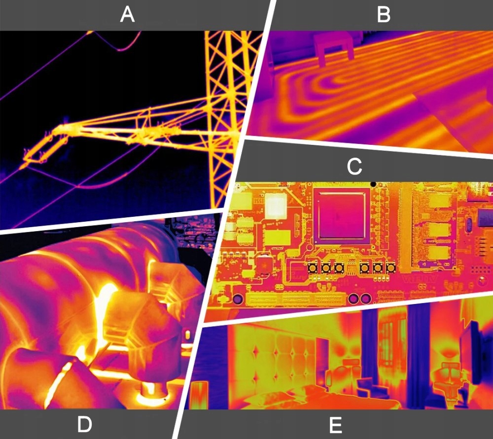 • Diagnostika strojev in naprav: Kamera omogoča zgodnje odkrivanje pregretih komponent, kar preprečuje okvar.
