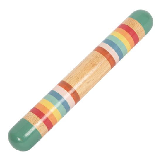 Kdo sliši dež? S to dežno palico iz lesa lahko otroci kadar koli posnemajo zvok dežja ali poslušajo nežen zvok vode. Gibanje dežne palice ustvarja prijeten, enakomeren zvok, ki spominja na tekočo vodo ali zvok dežnih kapljic. Medtem ko so v Južni Ameriki zdravilci želeli z zvokom dežne palice privabiti želeni dež, pri nas v fascinantnem, prijetnem zvoku s pomirjujočim učinkom uživajo predvsem otroci. Ima pa tudi vsestransko uporabo kot ropotuljica, ritmični instrument, zvočna igrača ali pomirjujoča senzorična igra. Senzorična igrača ne trenira le akustičnega zaznavanja, temveč je zaradi svoje sodobne barvne zasnove tudi prava paša za oči v otroški sobi. Glavne značilnosti: dežna palica iz trpežnega lesamožnost uporabe kot ropotuljica, ritmični instrument, zvočna igrača ali pomirjujoča senzorična igraprimerna tudi za najmanjše otrokepodpira razvoj akustičnega in vizualnega zaznavanjakakovosten tisk, sodobna barvna shema, veliko naravnega lesaprijetna haptika