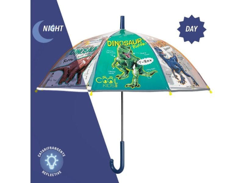 Perletti Otroški odsevni prozorni dežnik Perletti Cool Kids "Dinozaver", 15653