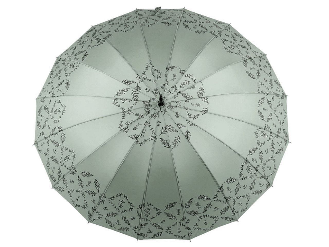 Ženski dežnik z vejicami in cvetovi - sivo-zelena barva, sv.