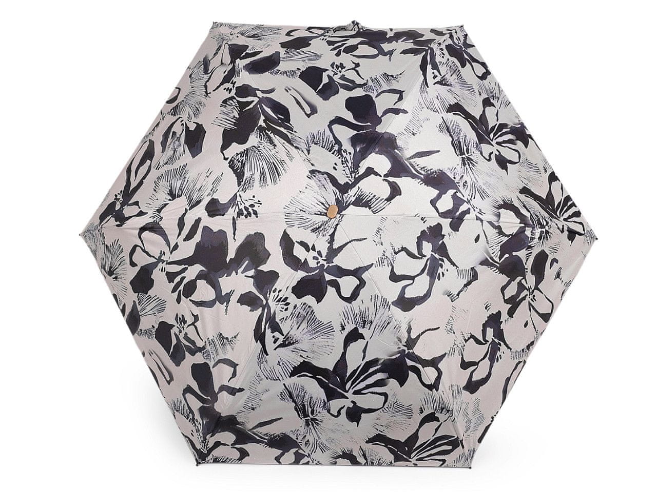 Zložljiv mini dežnik ima prevleko z motivom cvetja. Celoten opis