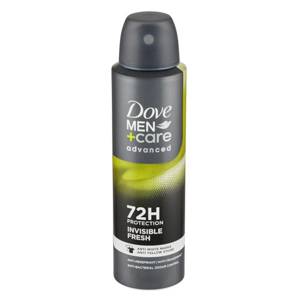 S antiperspirantom Dove Men+Care Invisible Fresh ostanite sveži in hkrati zaščitite svoja oblačila. Njegova napredna formula s tehnologijo trojnega delovanja zagotavlja do 72-urno zaščito pred potenjem in neprijetnim vonjem, medtem ko tehnologija ¼ vlažilca skrbi za kožo in jo ščiti pred draženjem. Ta antiperspirant je zasnovan tako, da na oblačilih ne pušča belih ali rumenih sledi – zato se lahko v črno-belih oblačilih počutite popolnoma samozavestno. Poleg tega vas bo navdušil dolgotrajen svež vonj citrusov, ki bo povečal vašo energijo in čistočo ves dan.