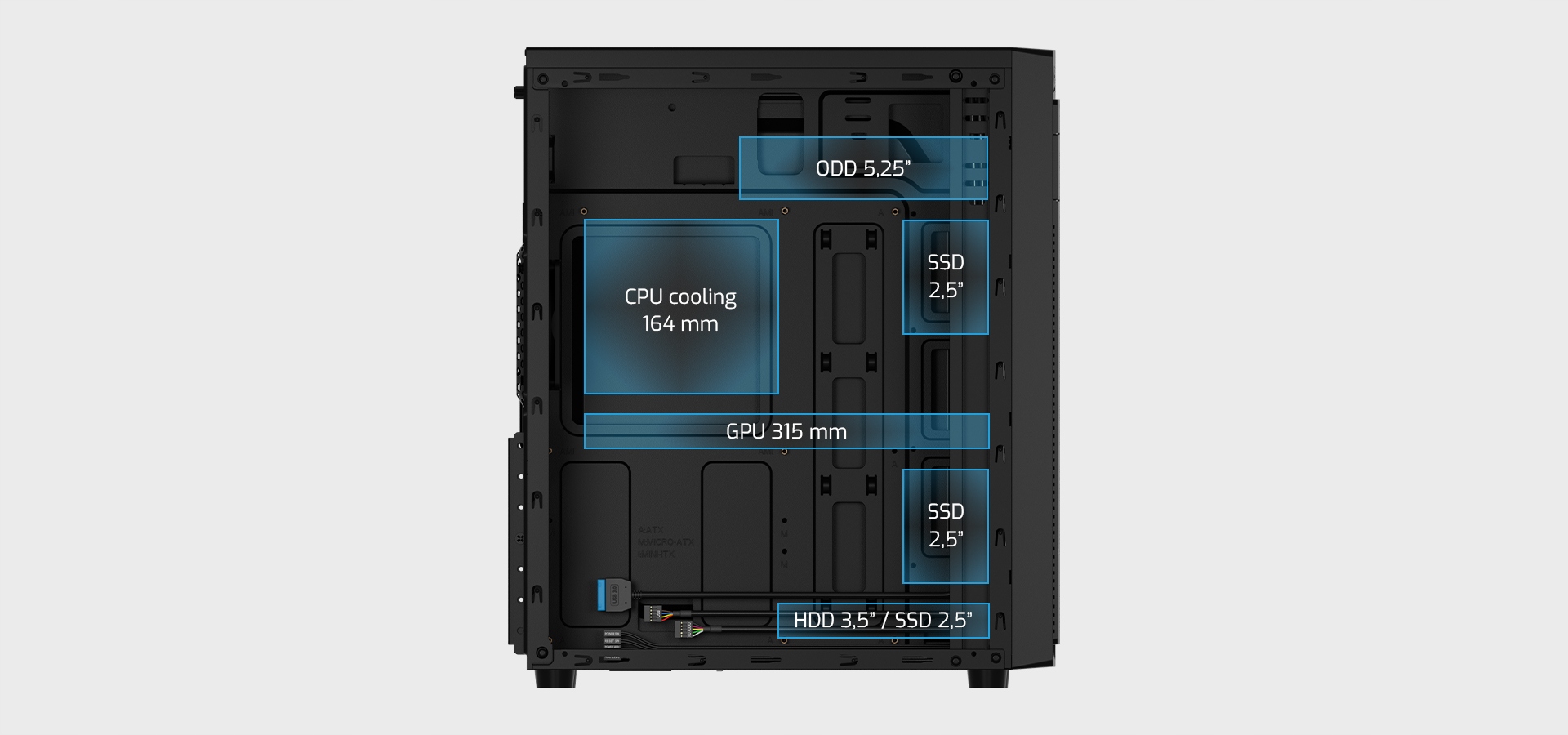 - Prostor za zračno hlajenje procesorja do 164 mm.