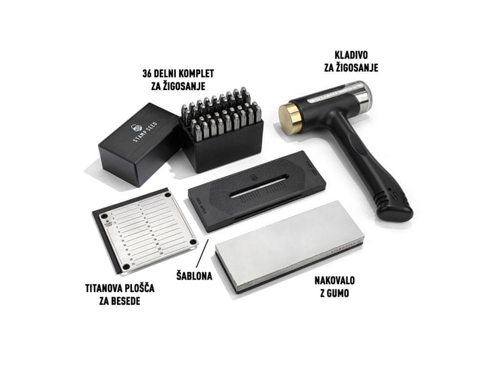 StampSeed komplet za žigosanje, titanova plošča, kladivo in nakovalo