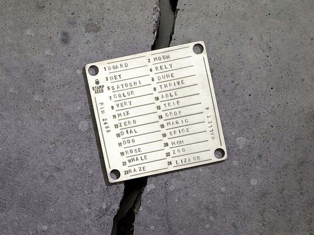 Komplet za varnostno kopijo semenske fraze ali drugih gesel vključuje titansko ploščo, komplet črk za žigosanje, kladivo, nakovalo z gumo in šablono za enostaven odtis besed. Plošča je odporna na ogenj, visoke temperature, korozijo in udarce. Celoten opis