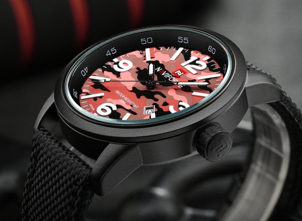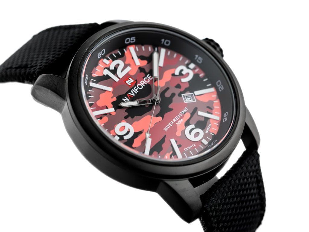 Barve: maskirna številčnica z vzorcem, črno ohišje, črn pas s črnimi šivi, bele številke in indeks.